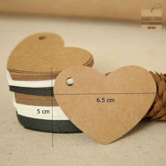 ป้ายแท็กสินค้ารูปหัวใจเป็นป้ายแท็กกระดาษเปล่าที่ใช้เครื่องตัดให้เป็นรูปทรงหัวใจ โดยมีขนาด 6.5×5 เซนติเมตร ทำจากกระดาษที่มีความหนาแข็งแรงมีขนาดแกรมประมาณ 350 แกรม ป้ายแท็กสินค้ารูปหัวใจนี้มีทั้งหมด 3 สีคือ สีกระดาษคราฟท์(สีน้ำตาล) สีขาว และสีดำ พร้อมเจาะรูบนป้ายให้เรียบร้อย ป้ายแท็กเปล่ารูปหัวใจเหมาะกับห้อยด้วยเชือกห้อยป้ายราคาสินค้าได้หลากหลายและหลายแบบที่ทางร้านมีให้เลือกมากมาย โดยสามารถห้อยเป็นของขวัญในวันพิเศษต่างๆ หรือจะห้อยบนกล่องขนมเบเกอร์รี่ และด้วยความที่เป็นกระดาษรูปหัวใจจึงเหมาะสุดๆกับอีกโอกาสนึงคือการห้อยกับของขวัญในวันวาเลนไทน์เพื่อให้คนสำคัญของคุณ